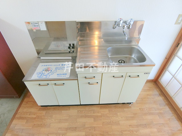 | 設備 | バルコニー/コンロ数:2口/コンロ:設置可/トイレ様式:洋式/トイレ状況:水洗/トイレ:専用/バストイレ別:バストイレ別/バス:有(専用)/フローリング/洗濯機置場:有(室内)/給湯/シャワー/エアコン/追い焚き:無/収納/TVアンテナ/ガス:プロパン/駐車場:近隣駐車場/水道:公営/排水:本下水 | ||