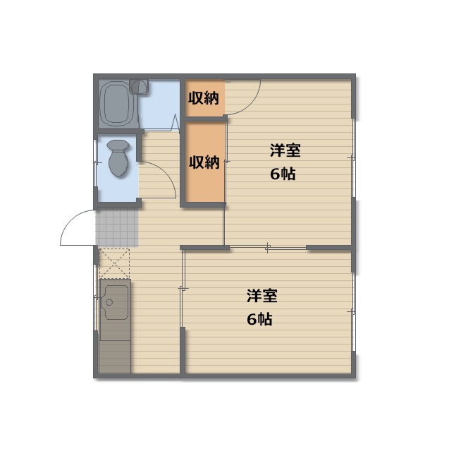 | 間取り | 2K | 間取り内訳 | 洋6/洋6/K4.4 |