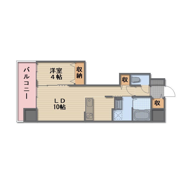 | 間取り | 1LDK | 間取り内訳 | LD10/K2.4/洋4 |