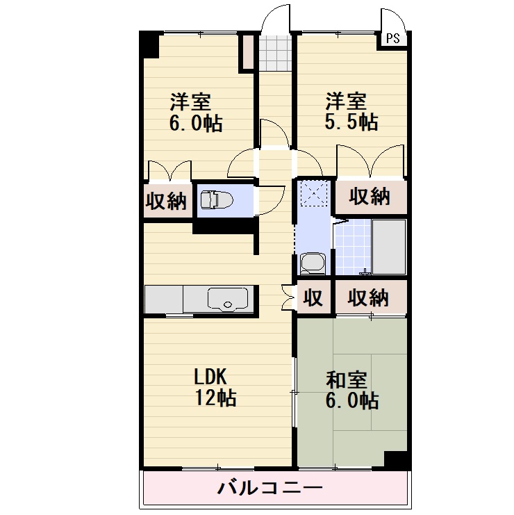 | 間取り | 3LDK | 間取り内訳 | 和6/LDK12/洋5.5/洋6 |