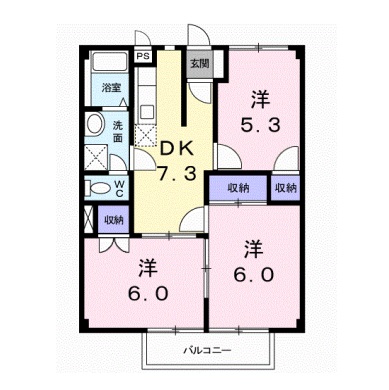 | 間取り | 3DK | 間取り内訳 | 洋6/洋6/洋5.3/DK7.3 |